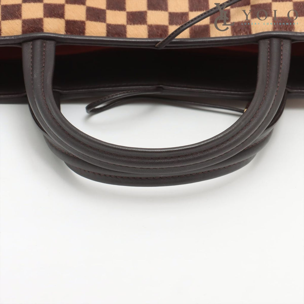 in Damier Sauvage calf hair with smooth chocolate brown leather trim and gold toned brass hardware