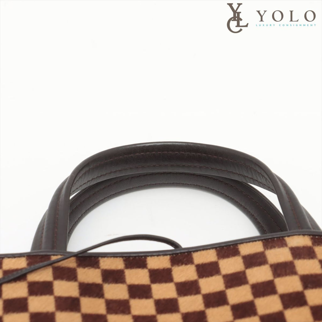 The iconic shape and Damier-print calf hair add an element of timelessness to this mini-sized bag, adding a touch of sophistication to any look. Easily store your wallet, cell phone and makeup inside to keep all your essential items together.