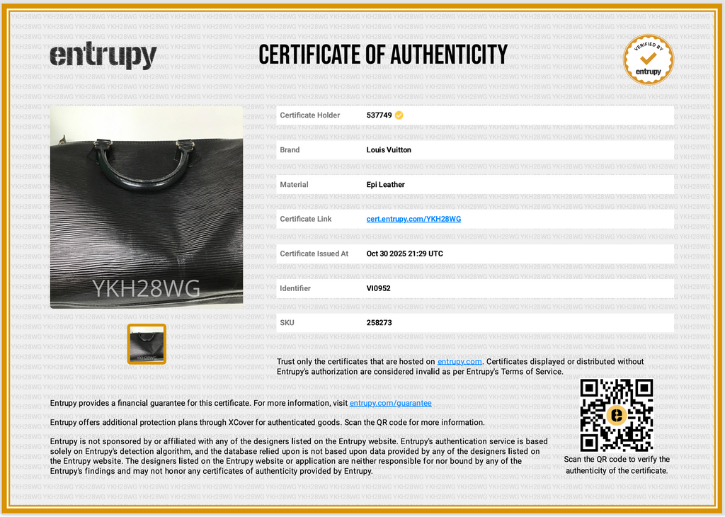 Entrupy Certificate of Authenticity and YOLO Protective Dust Cover