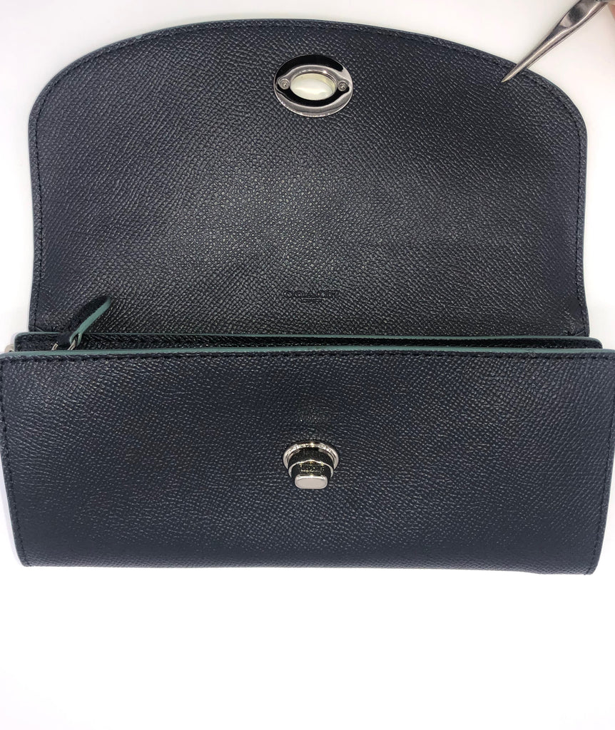 in Midnight Navy Leather with Teal Trim and Silver toned hardware