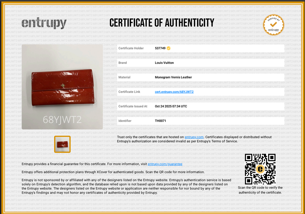 Louis Vuitton Red Vernis Leather Porte Tresor Wallet COA