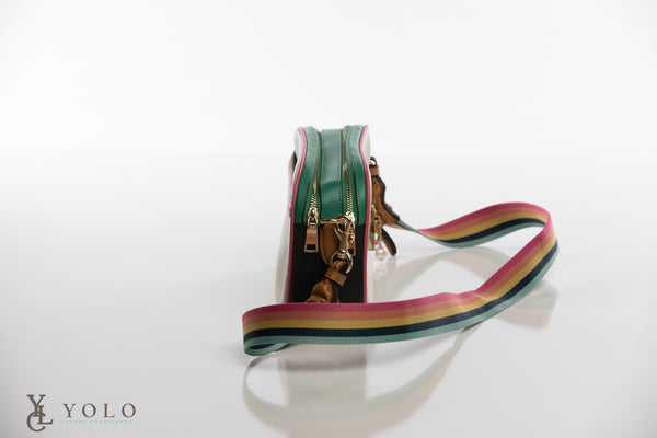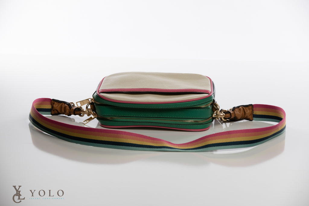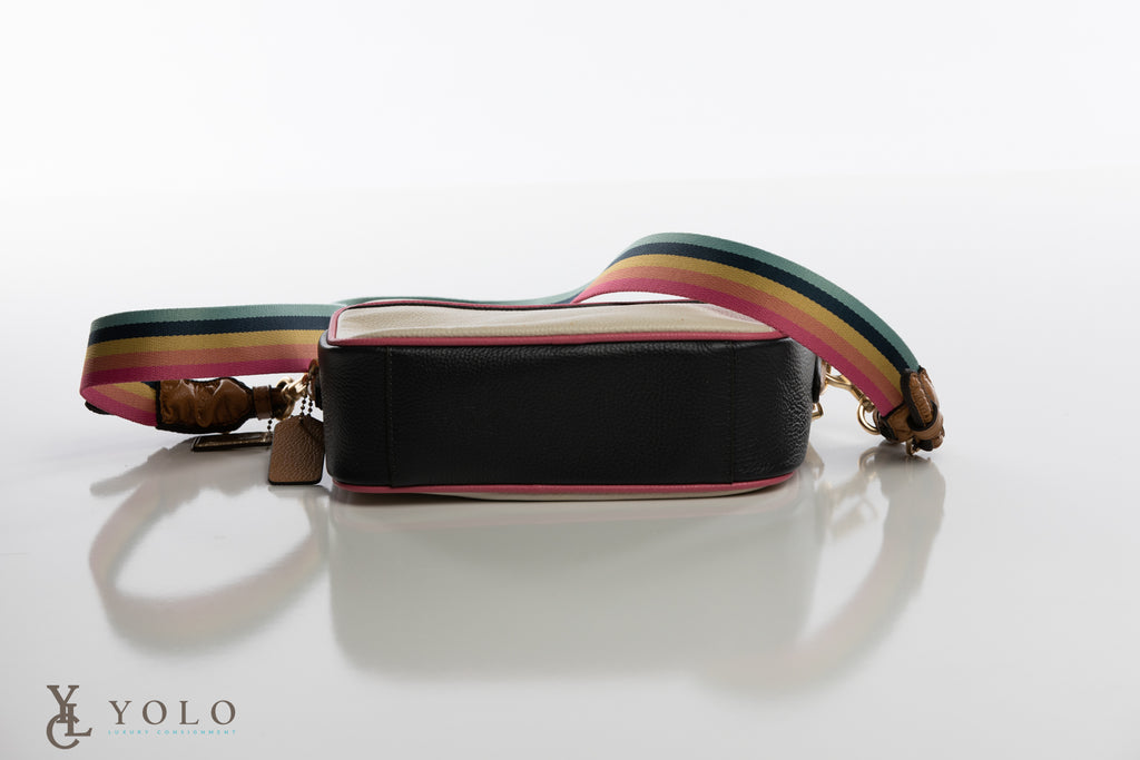 Embossed with heritage horse and carriage logo, shaped with classic camera bag design, and set off with fun touch of color - this bag is the both elevated yet down to earth, fun yet sassy, and functionally proud!