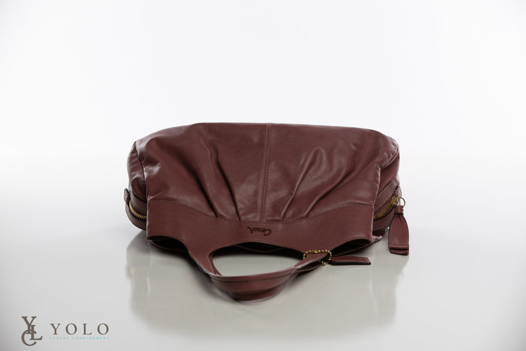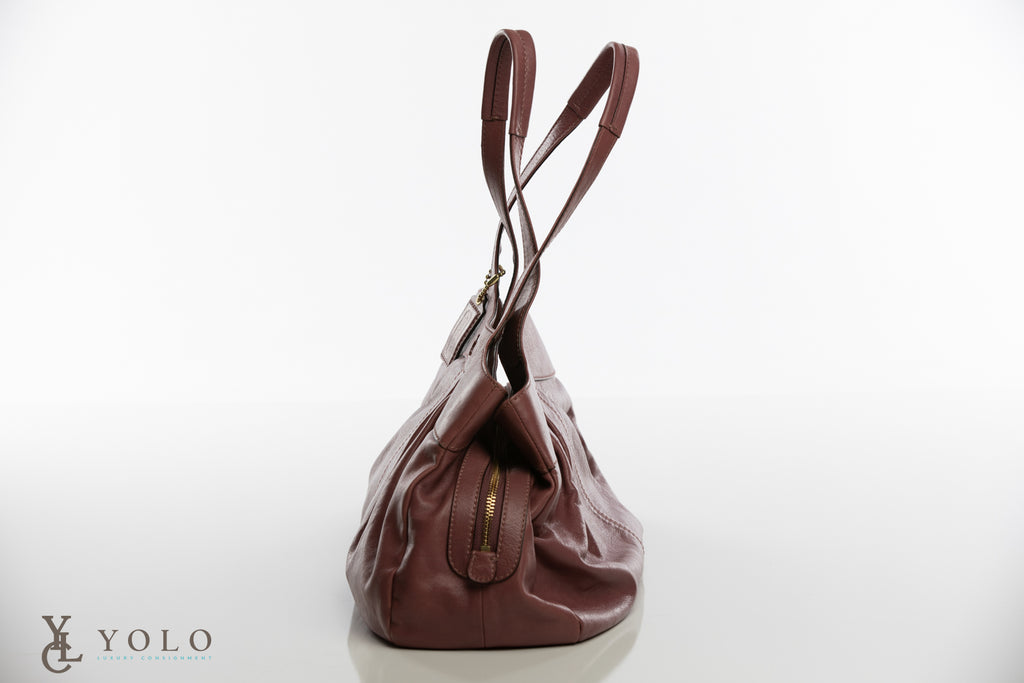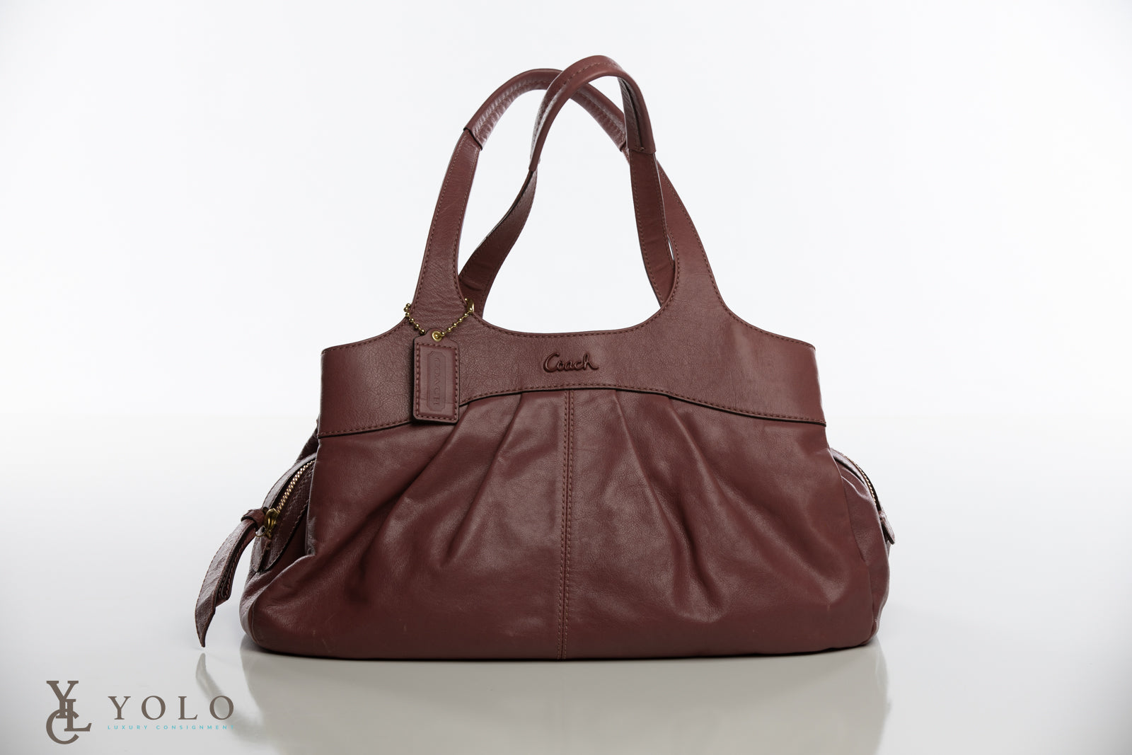 This classic Coach is crafted from luxuriously soft leather with pleats running down the center to add a sophisticated touch. It is sure to add a timelessly elegant look to any ensemble.