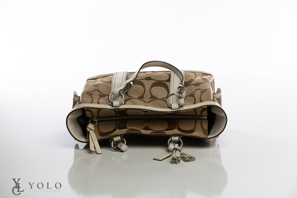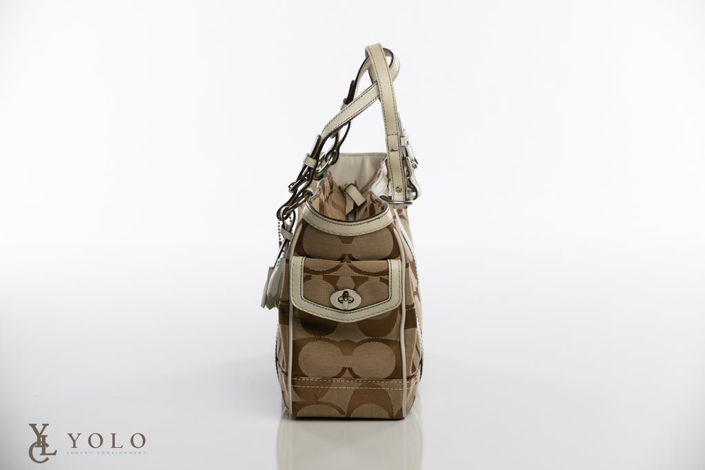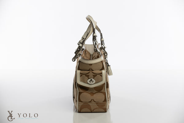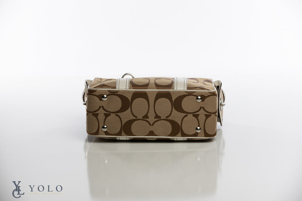 in Khaki Signature Jacquard with White Leather Trim and Silver toned hardware