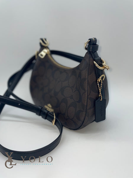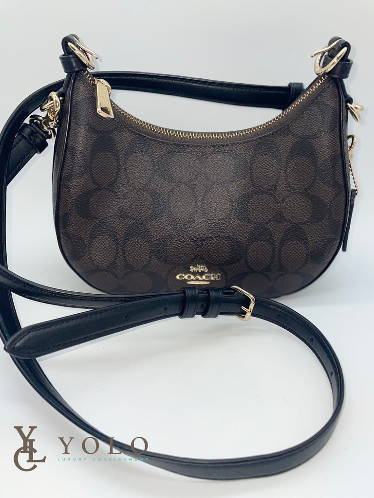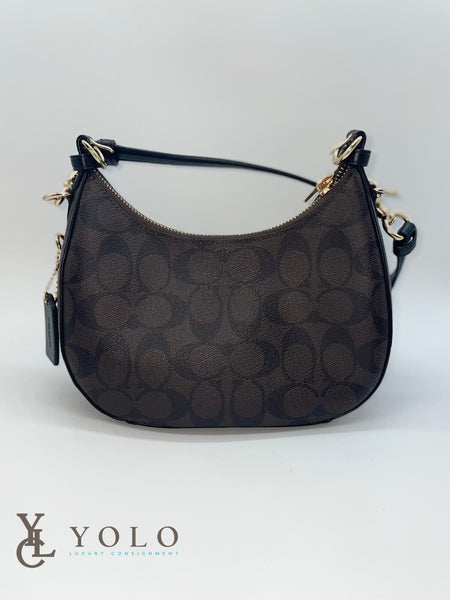in Brown Signature Coated Canvas with Black leather trim and Gold toned hardware