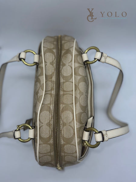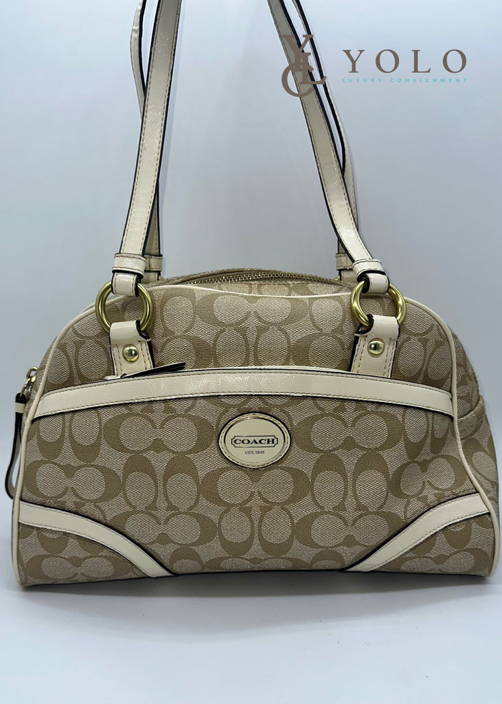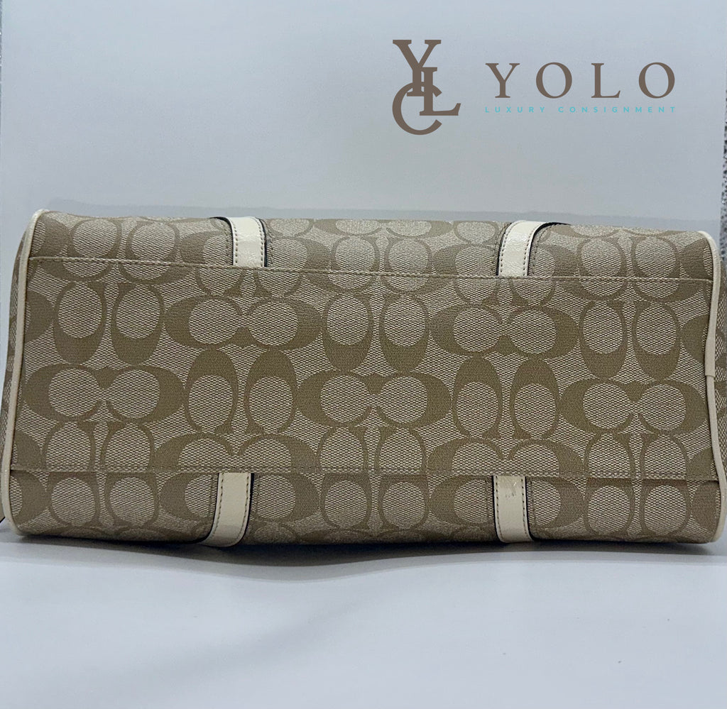 in Khaki Signature Coated Canvas with White leather trim and gold toned hardware