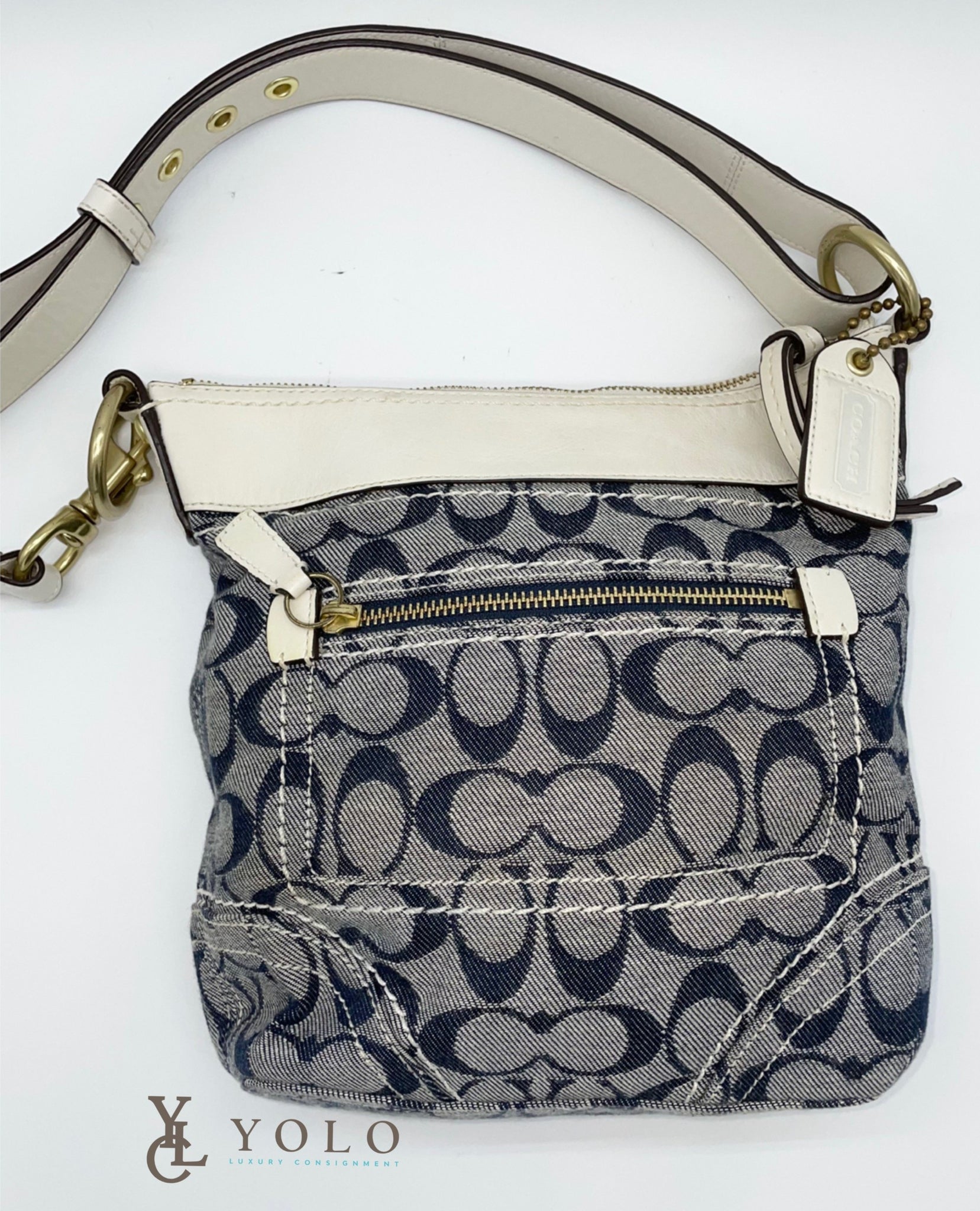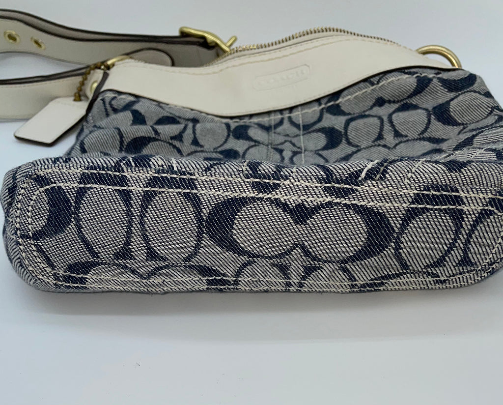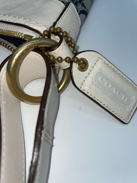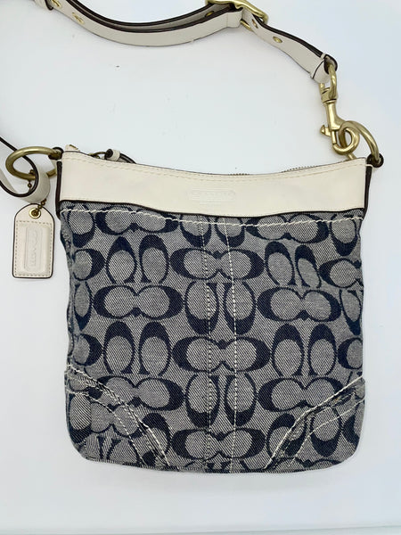 This bag has a classic Coach look with a fun twist, featuring denim canvas and contrast stitching and trim. Add a bright pop of sophistication with this roomy bag!