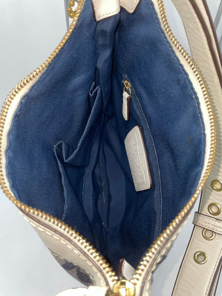 in Signature Canvas Blue "Denim" color with Cream leather trim and gold toned hardware