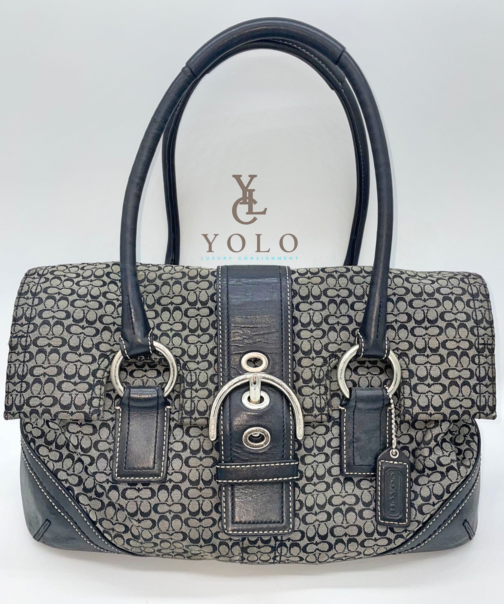 Iconic Coach elements are all over this bag with the oversized buckle flap, mini signature jacquard, and gorgeous contrast stitching - it's all in the details!