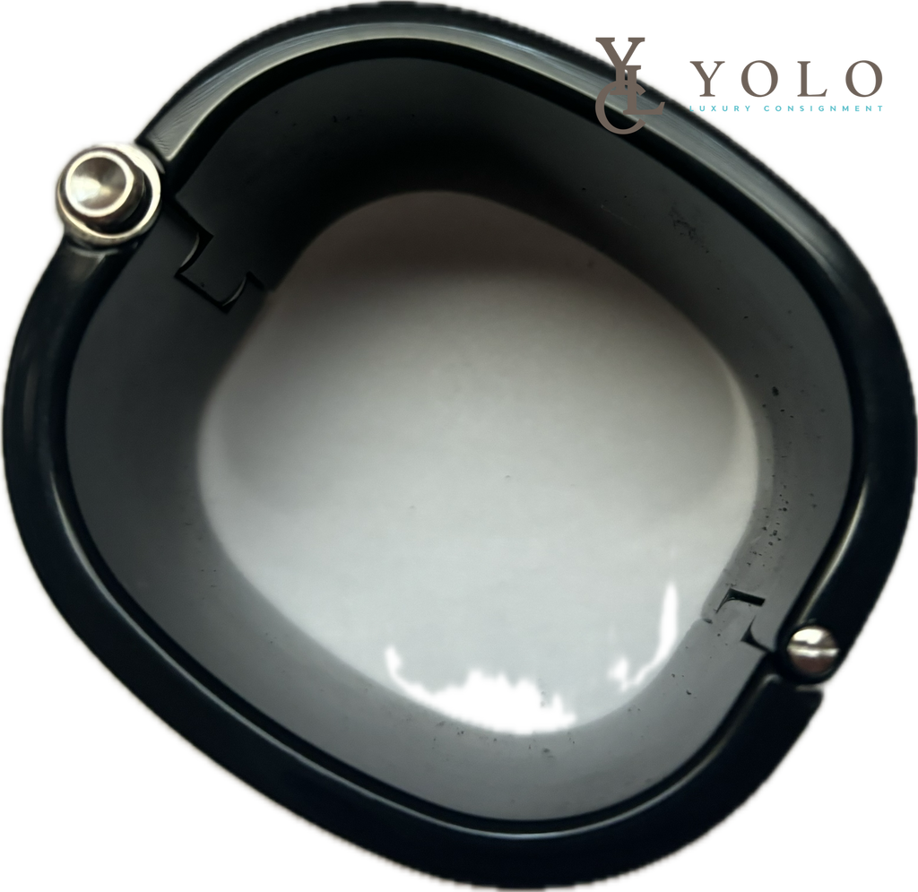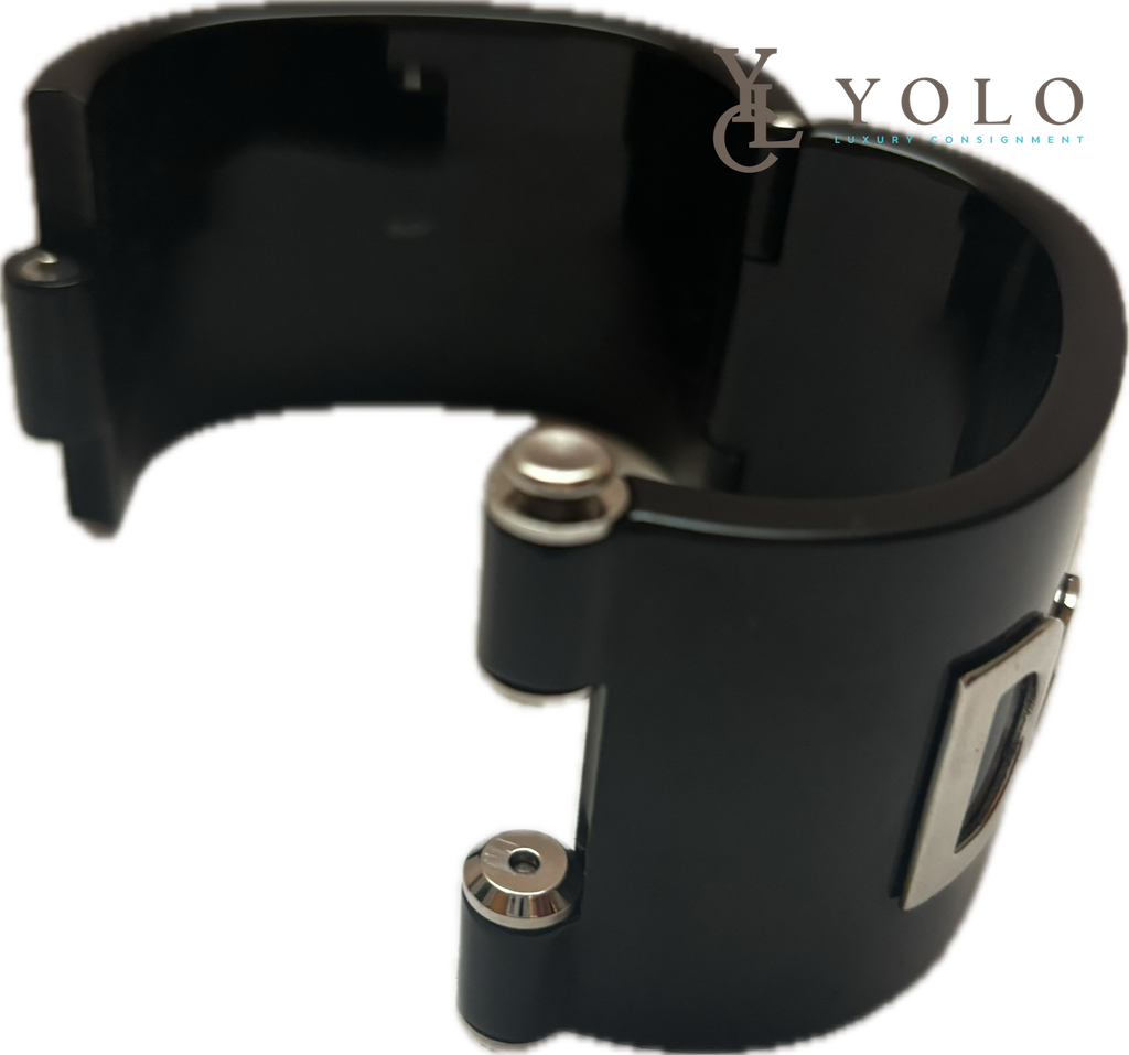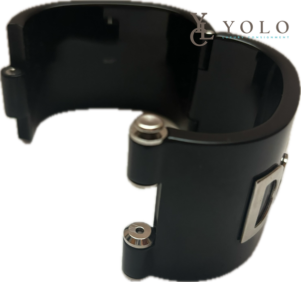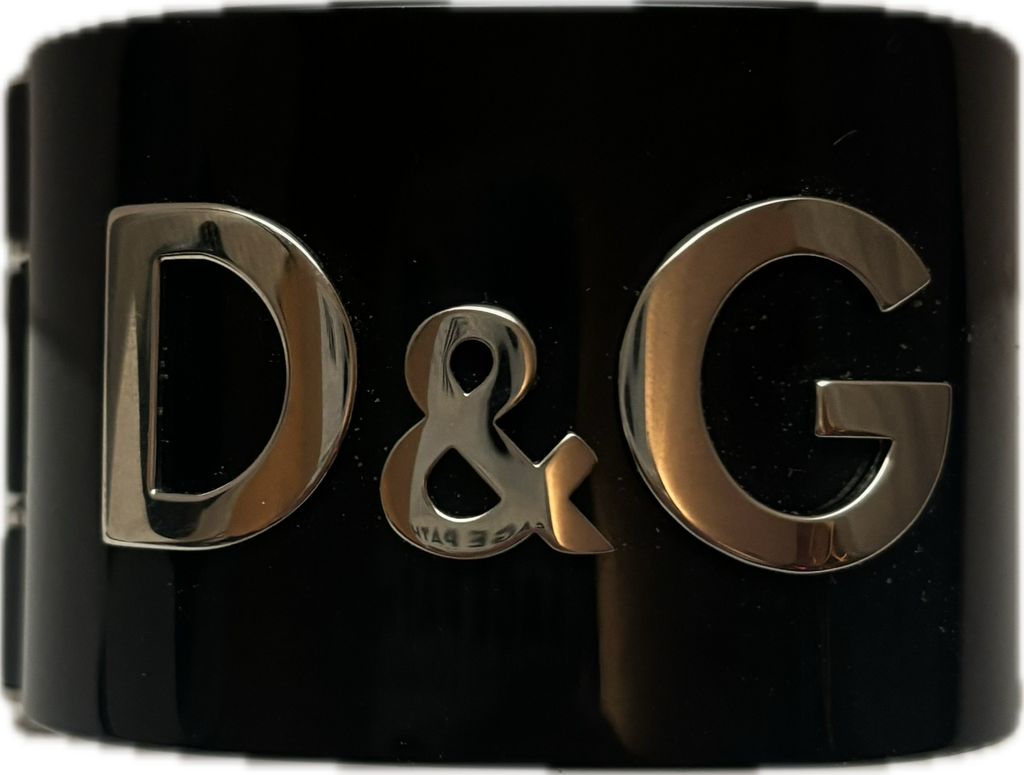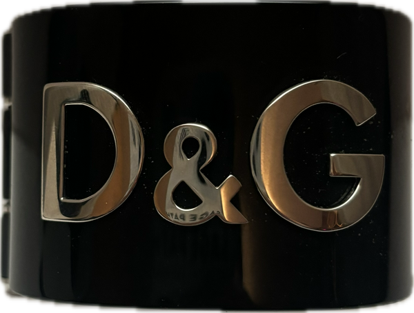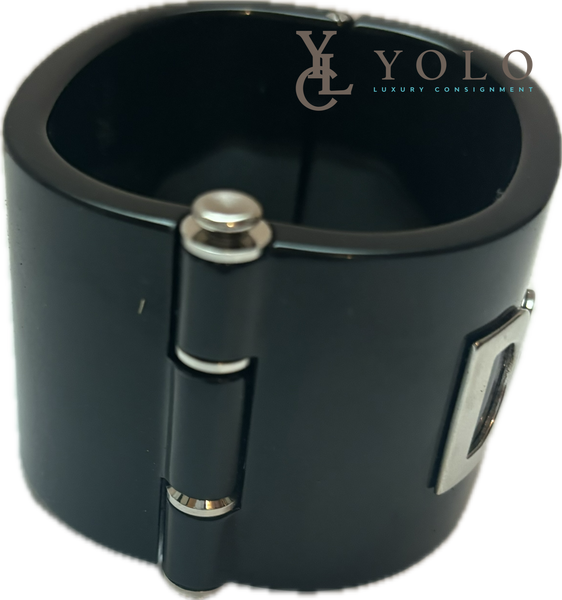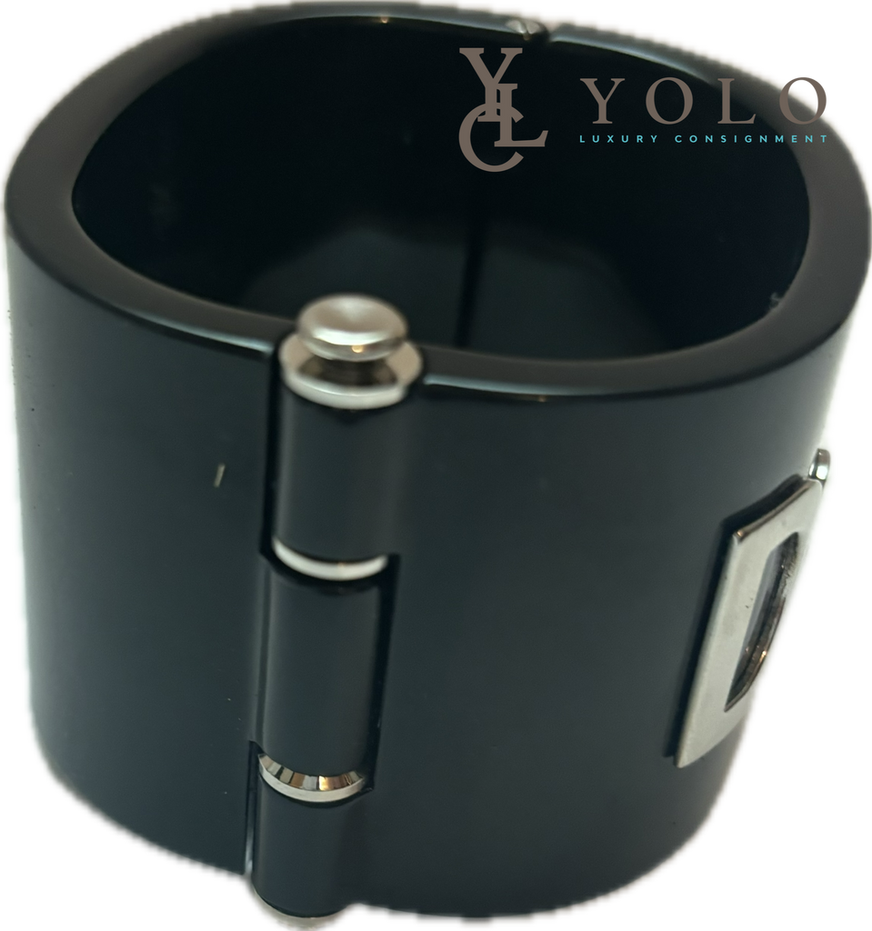 Authentic Pre-loved Dolce & Gabbana Black and Silver "Locked" Enamel Cuff Logo Bracelet