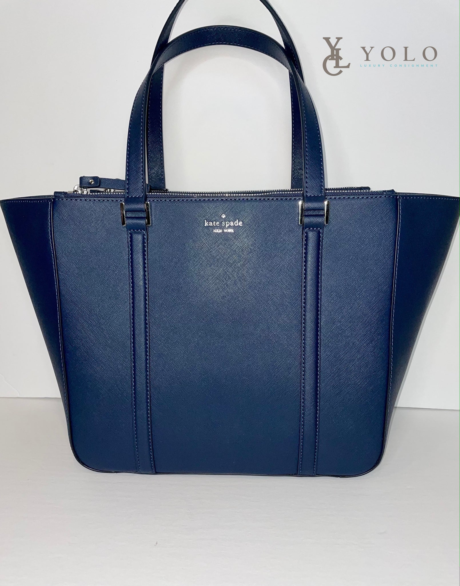 From one of Kate Spade's "surprise" lines, this tote can handle it all. From everyday stuff like a wallet, keys, phone, sunglasses... it also holds: 2 lipsticks, $3 in change, 4 crumpled receipts, an taco...