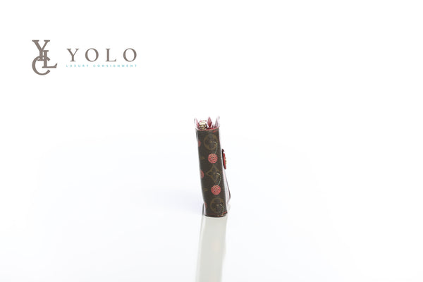 in iconic Monogram coated canvas with Cherry embellishment and Gold Toned brass hardware