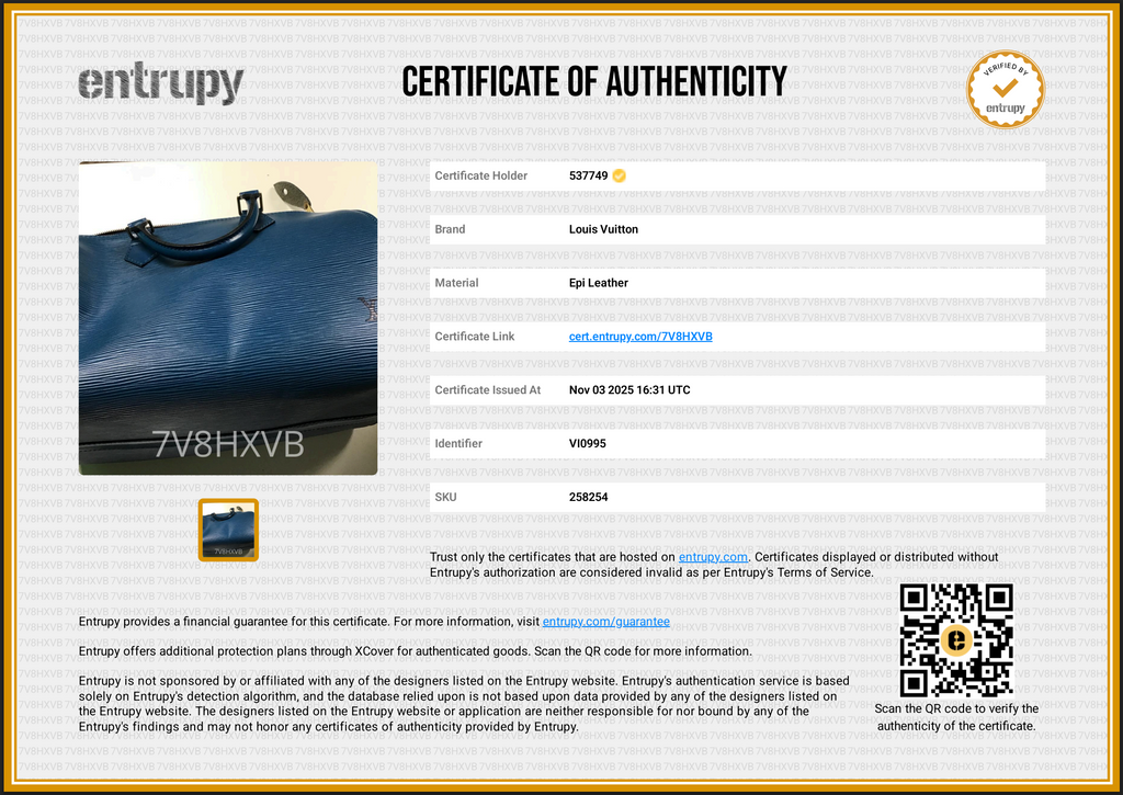 Entrupy Certificate of Authenticity and YOLO Protective Dust Cover