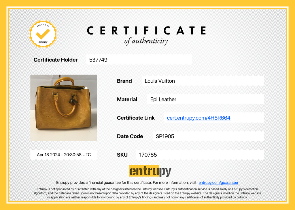 Includes: LV iconic Lock and Key, YOLO Protective dust cover, and Entrupy certificate of authenticity.