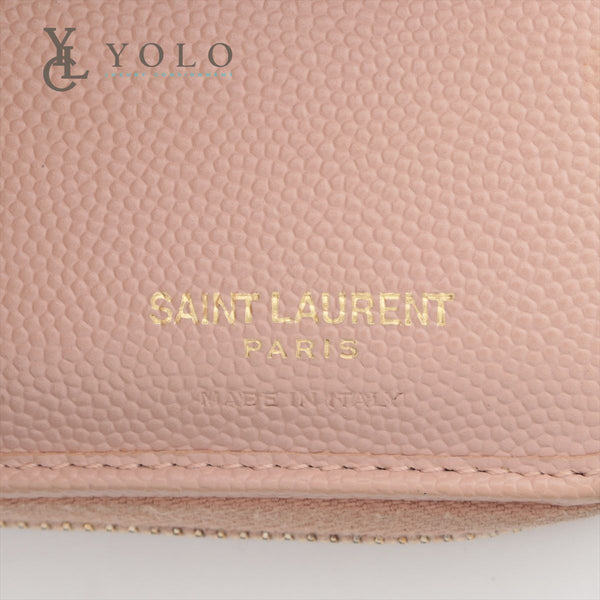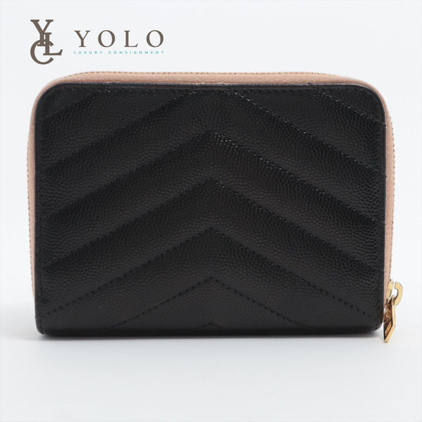 Saint Laurent YSL Leather Matelasse Monogram Compact Zip Around Wallet